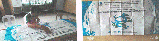 Photo documentation of Conservation and Development station of CENRO Ozamiz City with the tarpapel that they made as part of the Month of the Ocean 2023 celebration.