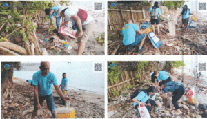 Coastal clean-up activity conducted at the coastlines of Mambajao, Camiguin.by participants from PhilHealth and DENR PENRO Camiguin