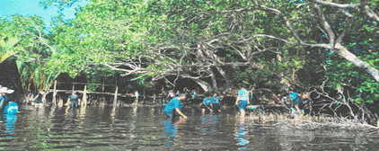 Photo showing the participants during the mangrove tree planting at Brgy. Panalsalan, Plaridel on May 26, 2023