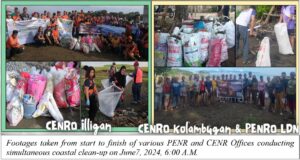 A. 6:00 AM, June 7, 2024 – Simultaneous Coastal and Underwater Clean-up Activity conducted in various sites by DENR X Regional Office and PENR and CENR Offices.