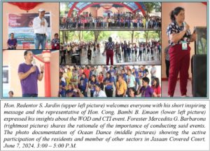Prevention is better than cure, is a saying that would always be applicable to most problems we face and is not any different with the conducted CEPA activity by the regional office of DENR X conducted in Jasaan Covered Court on June 7, 2024 at 3:00-5:00 P.M. With this activity, the regional office promotes awareness through Ocean Dance “Hataw” by the CDD-CRFMS staffs led by Asst. Chief, CDD and Concurrent Chief CRFMS Forester.